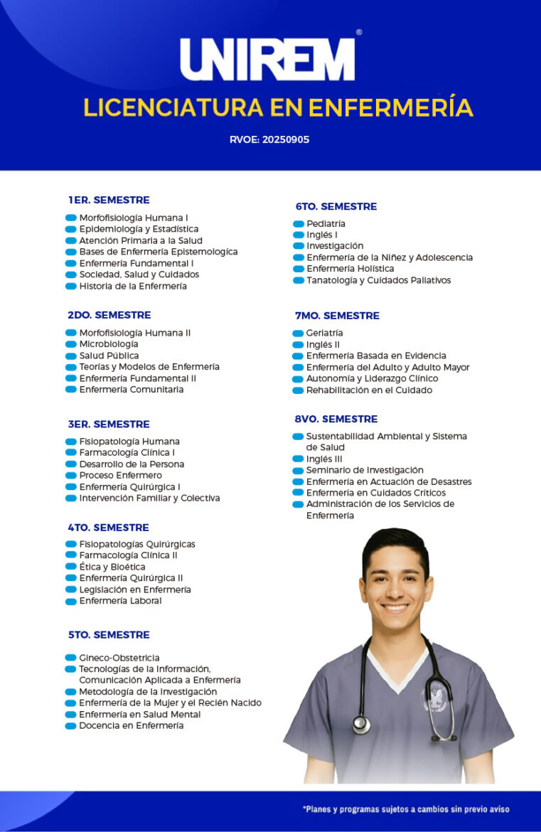 Formar profesionales altamente capacitados en Enfermería, destacados por su excelencia académica, conocimientos especializados y habilidades prácticas. Como universidad comprometida con la vanguardia educativa, incorporamos tecnología de punta en nuestros programas, proporcionamos a nuestros estudiantes herramientas y recursos digitales que potencian su aprendizaje y los preparan para enfrentar los desafíos del mundo empresarial en constante evolución.
